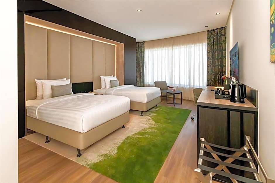 Comes with free Wi-Fi, a work desk, a smart TV, a safety box, a mini-bar, and a complimentary tea, water, and coffee-making facility that is replenished daily. Standard Twin Room also includes a separate bathtub and shower.
